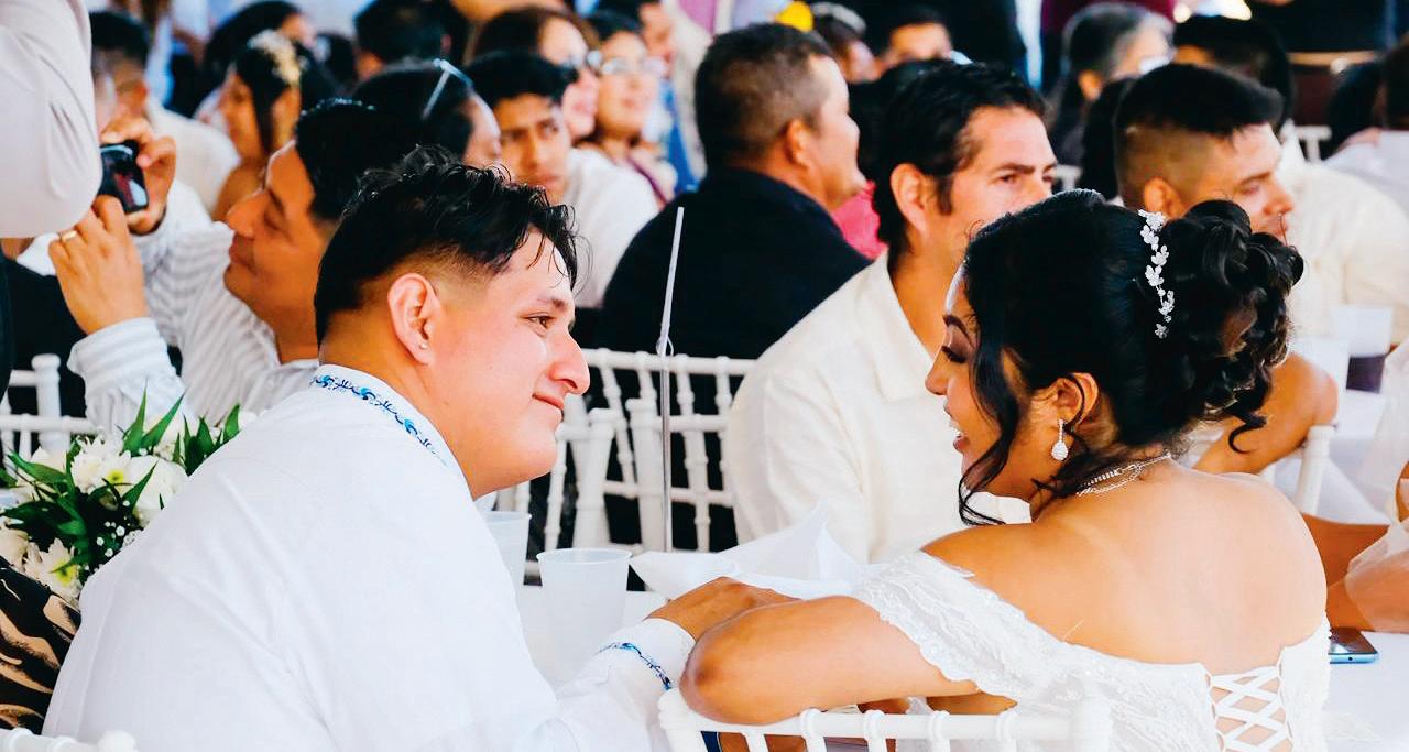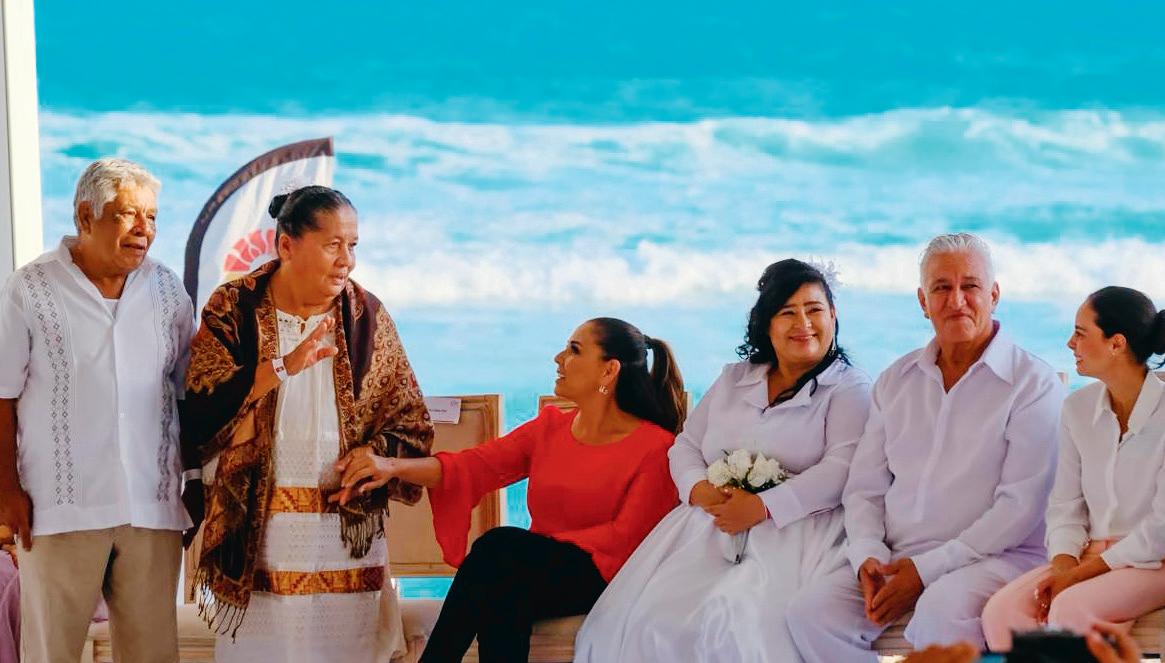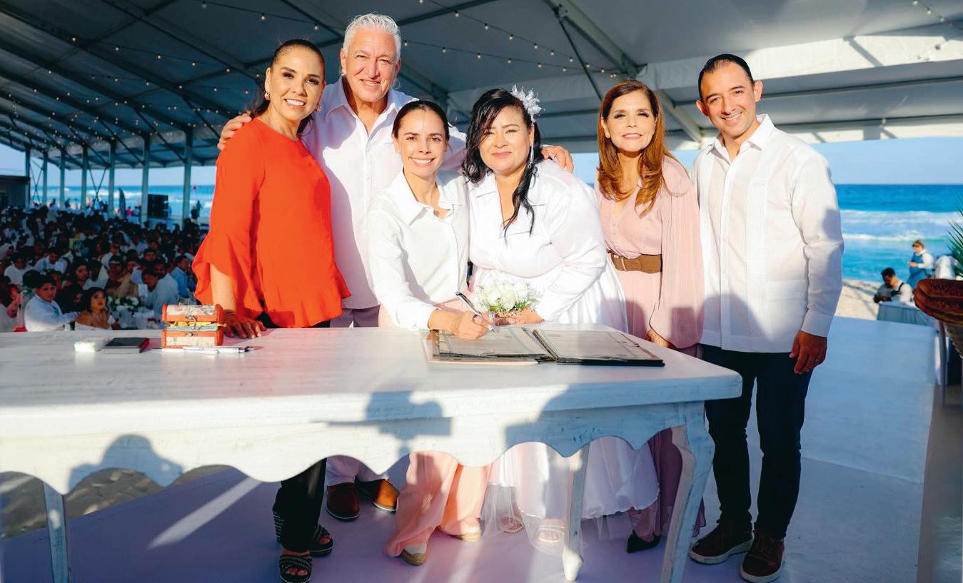UNIÓN. Mara Lezama , Vero Lezama y Ana Paty Peralta fungieron como testigos de honor en las Bodas Colectivas 2026. En Playa Delfines, 357 parejas, como los nuevos esposos presentes en esta imagen, sellaron su compromiso frente al Caribe LOCAL P. 5