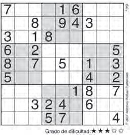 Complete el recuadro de tal manera que cada fila, columna y cuadro de 3x3 tengan los números del 1 al 9.
