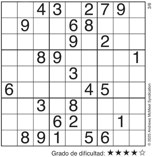 Complete el recuadro de tal manera que cada fila, columna y cuadro de 3x3 tengan los números del 1 al 9.