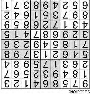 Complete el recuadro de tal manera que cada fila, columna y cuadro de 3x3 tengan los números del 1 al 9.