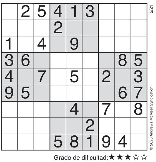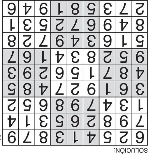 Complete el recuadro de tal manera que cada fila, columna y cuadro de 3x3 tengan los números del 1 al 9.