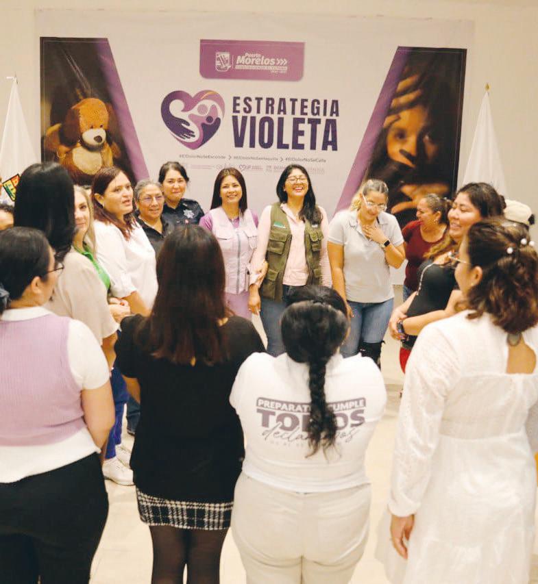 Con el objetivo de prevenir y erradicar la violencia contra mujeres, niñas y adolescentes, la presidenta municipal de Puerto Morelos, Blanca Merari Tziu Muñoz, puso en marcha la iniciativa Estrategia Violeta, que contempla acciones coordinadas entre el Grupo Especializado en Atención a la Violencia Intrafamiliar y de Género (Geavig), el Instituto Municipal de la Mujer (IMM) y el Sistema Integral de Protección a Niñas, Niños y Adolescentes (Sipinna).