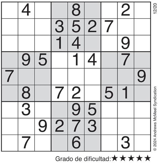 Complete el recuadro de tal manera que cada fila, columna y cuadro de 3x3 tengan los números del 1 al 9.