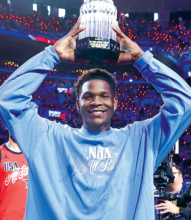 El líder de los Minnesota Timberwolves, Anthony Edwards, recibió su primer premio MVP (Jugador Más Valioso) del Juego de las Estrellas de la NBA tras la victoria de su equipo Estrellas en la cita del domingo en Inglewood (sur de Los Ángeles).