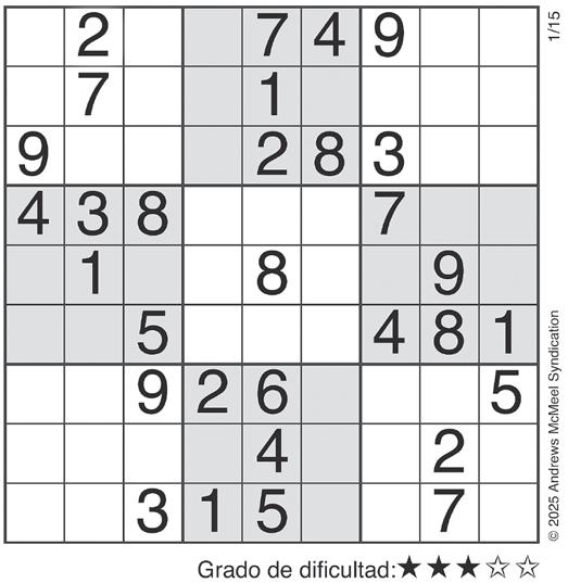 Complete el recuadro de tal manera que cada fila, columna y cuadro de 3x3 tengan los números del 1 al 9.