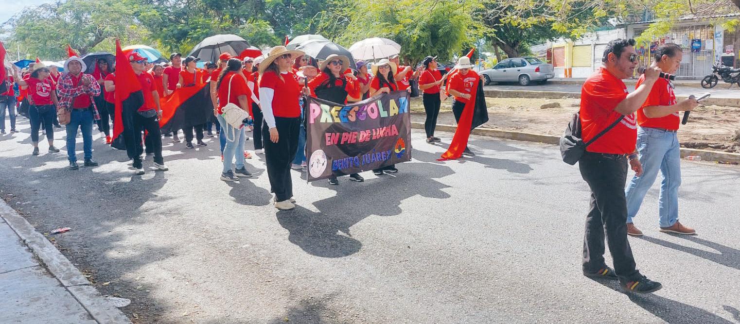Los docentes recordaron que, si bien no se ha instruido una suspensión total de actividades, cada maestro se suma según sus posibilidades: desde la colocación de mantas y banderas hasta la paralización parcial o total de clases. / B. MUÑOZ Y S. REYES
