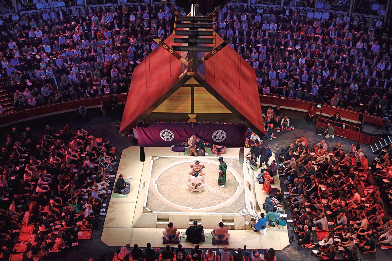 Durante una semana, un rincón de Londres se transformó en el antiguo Japón para acoger a decenas de luchadores de sumo, en una rarísima exhibición de este deporte fuera del país asiático. El teatro Royal Albert Hall, conocido mundialmente por albergar conciertos, acogió un dojo auténtico de tierra y arena, y un llamativo tejado que recuerda a los santuarios jinja. Miles de aficionados llenaron el establecimiento situado al oeste de Londres el miércoles, en la noche de apertura del Grand Sumo Tournament que durará cinco días y en el que participan 40 rikishi, algunos de ellos superestrellas de la disciplina como Onosato y Hoshoryu. Esta fue la primera vez que la Asociación de Sumo de Japón (JSA) organiza un evento fuera del país desde 2013, cuando los luchadores compitieron en Yakarta, y supone el regreso a Londres tras 34 años de ausencia. / AFP