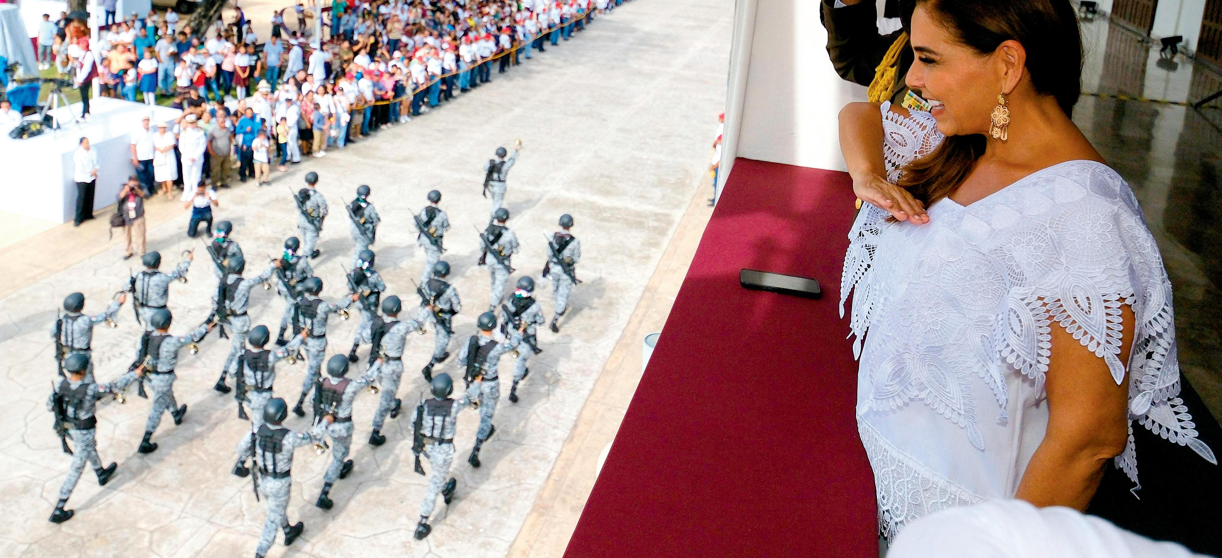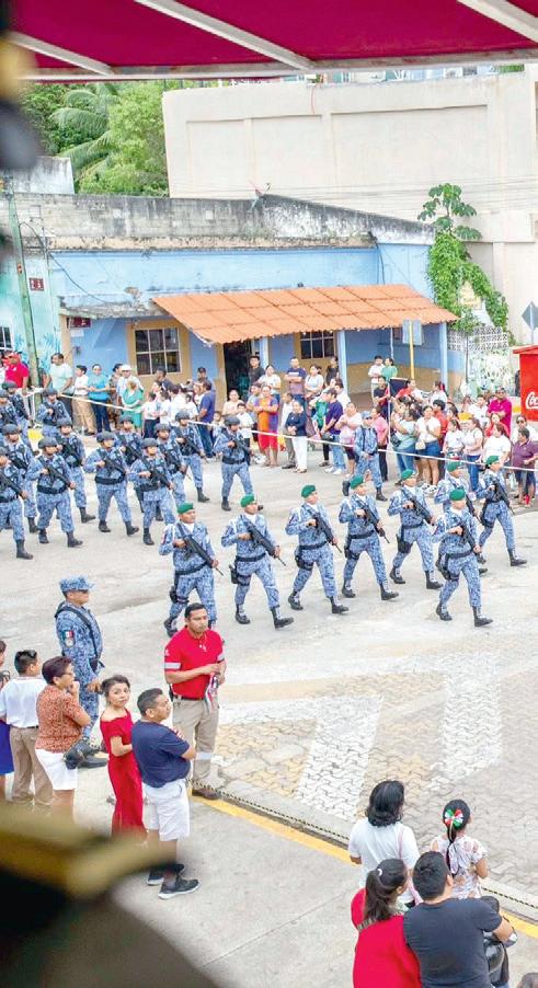 PROTOCOLO. La gobernadora Mara Lezama encabezó el desfile cívico-militar por el 215 aniversario de la Independencia de México en Chetumal. Participaron más de 13 mil personas, entre estudiantes, fuerzas armadas y autoridades. Saludó a familias y entregó rehiletes patrios frente al Palacio de Gobierno LOCAL P. 6