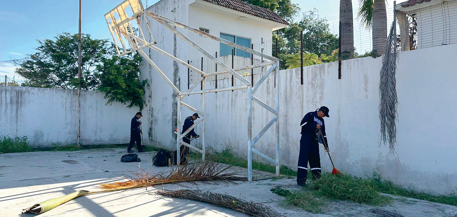 Durante la jornada, personal naval, estatal y municipal realizó labores de rehabilitación y mejora de las instalaciones. Entre las acciones destacaron la reparación de juegos infantiles, aplicación de pintura en canchas deportivas, cambio de tableros,