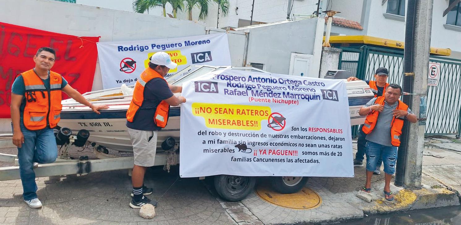 Suman dos días que lancheros de Puerto Juárez mantienen un plantón pacífico frente a las oficinas de ICA, para exigir el pago de adeudos de 13 meses, por trasladar personal que construye el Puente Lagunar Nichupté LOCAL P. 5