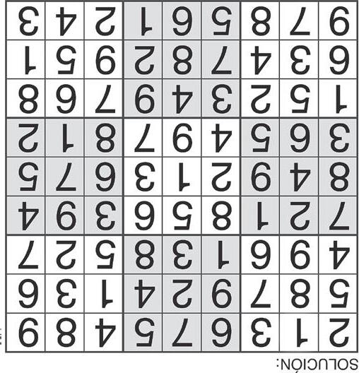 Complete el recuadro de tal manera que cada fila, columna y cuadro de 3x3 tengan los números del 1 al 9.
