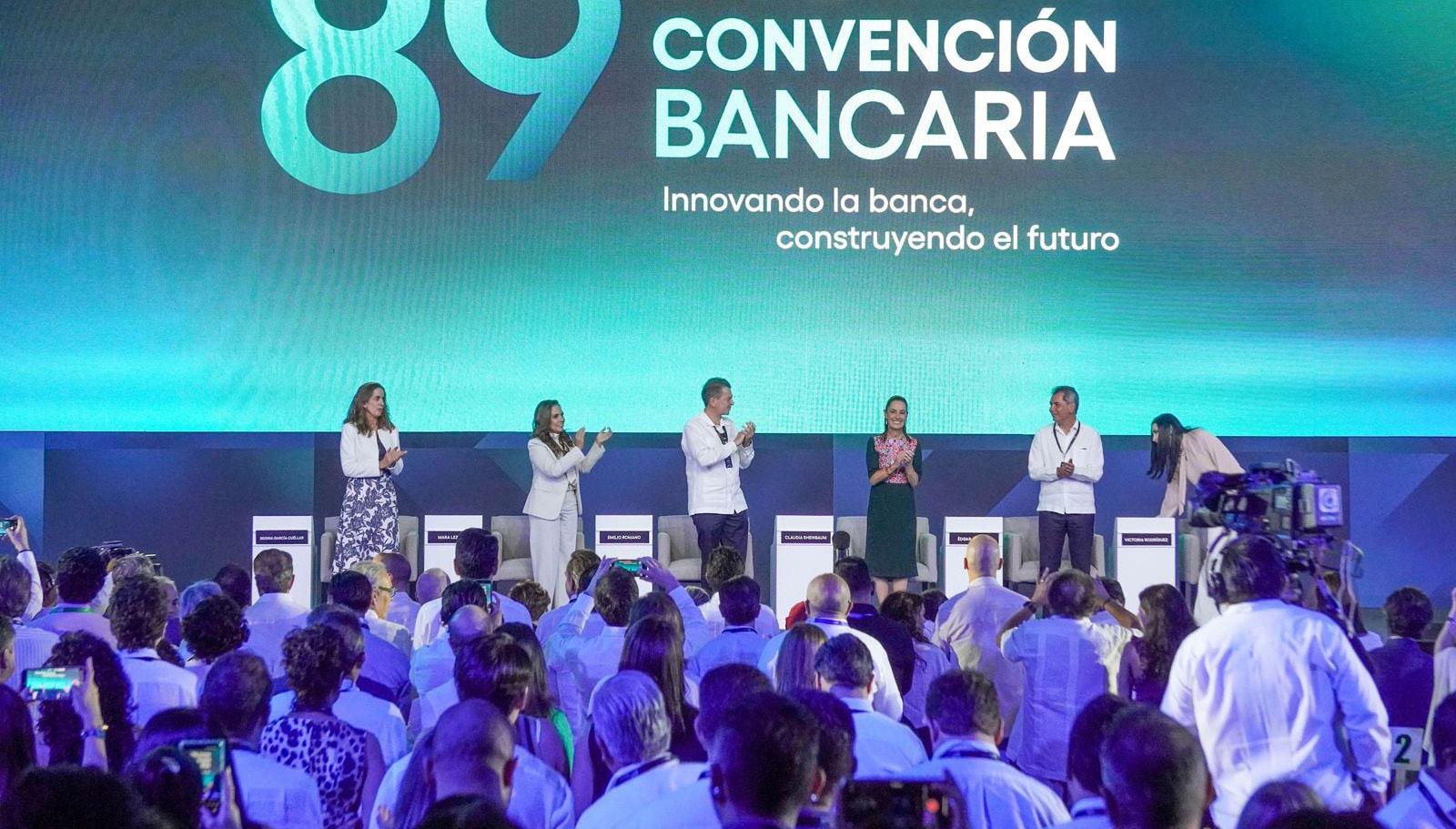 ACUERDOS. La presidenta Claudia Sheinbaum inauguró la 89 Convención Bancaria en Quintana Roo. Celebró que el sector financiero eleve el crédito para 2030 y simplifique los pagos digitales mediante el sistema CoDi.