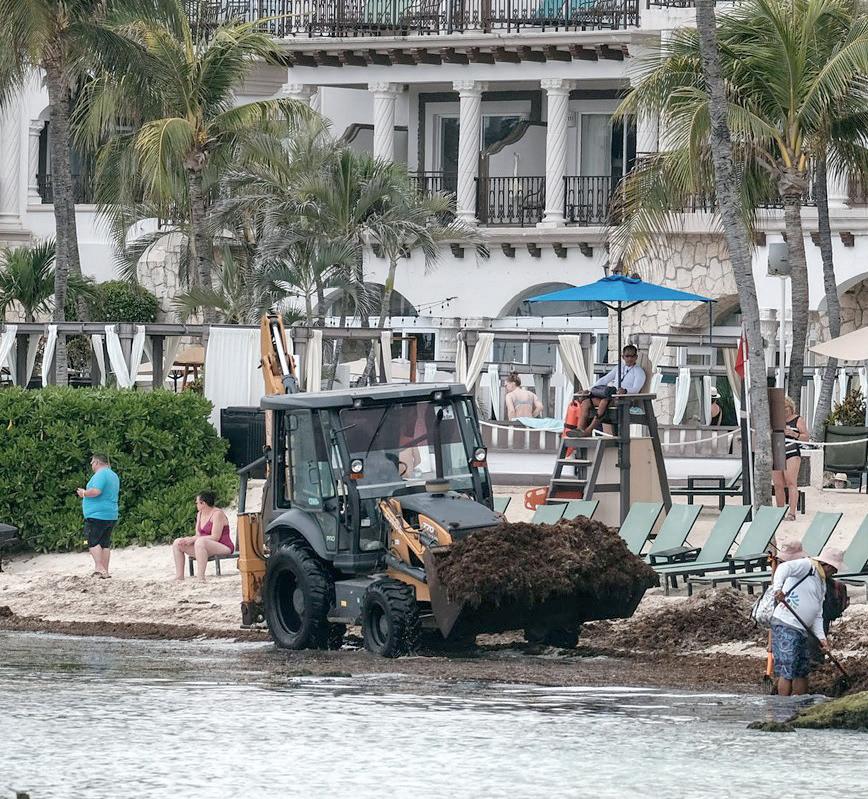 Con cada amanecer en las playas de Quintana Roo comienza un ritual que combina disciplina, fuerza humana y maquinaria pesada. Decenas de cuadrillas se despliegan con palas, carretillas y rastrillos para enfrentar el recale masivo de sargazo que cubre la arena, mientras tractores, retroexcavadoras, barredoras y volquetes recorren la franja costera. En altamar, buques especializados vigilan y recolectan toneladas de alga antes de que toque la orilla.