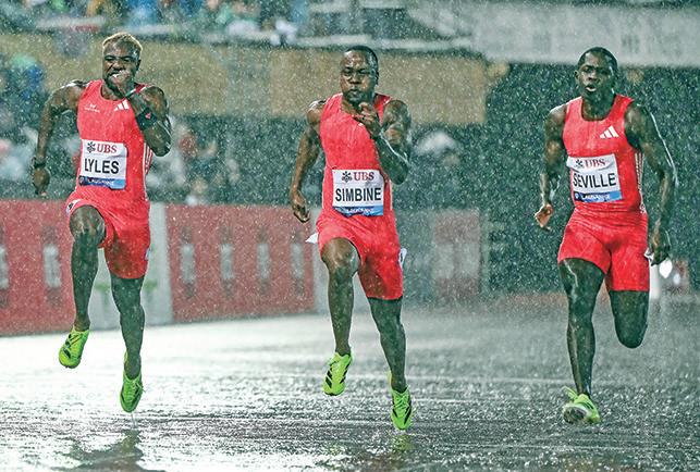 El jamaicano Oblique Seville se llevó bajo la lluvia la victoria en los 100 metros de la reunión de Lausana de la Liga de Diamante de atletismo, por delante del campeón olímpico de la distancia, el estadounidense Noah Lyles, que sufrió este miércoles una nueva derrota. La insistente lluvia que cayó durante toda la reunión sobre la pista y que mojó o encharcó el tartán, deslució completamente la noche y terminó con cualquier esperanza de tiempos destacados. A menos de un mes del Mundial de Tokio, Lyles no ha ganado ninguna carrera de 100 metros. / AFP