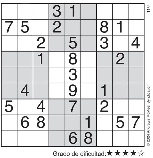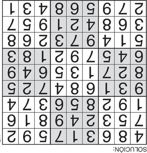 Complete el recuadro de tal manera que cada fila, columna y cuadro de 3x3 tengan los números del 1 al 9.