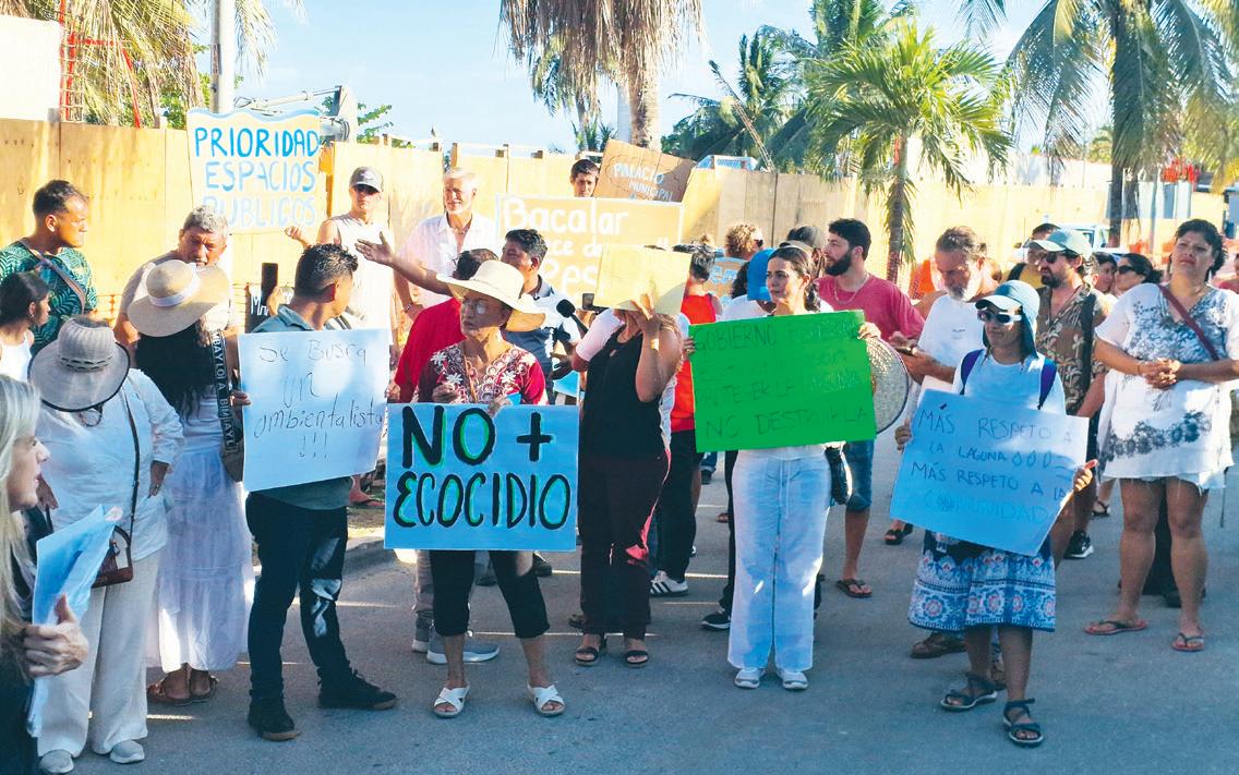 durante la protesta realizada el miércoles pasado. Por su parte, el ingeniero ambiental José Roch señaló que cualquier obra en la zona costera de la laguna requiere una MIA conforme a la Ley General del Equilibrio Ecológico y la Protección al Ambiente (LGEEPA), pero además, por la zona en la que se lleva a cabo la obra y su magnitud, antes de que la Secretaría de Medio Ambiente y Recursos Naturales (Semarnat) apruebe o no la MIA, se debe hacer pública.
