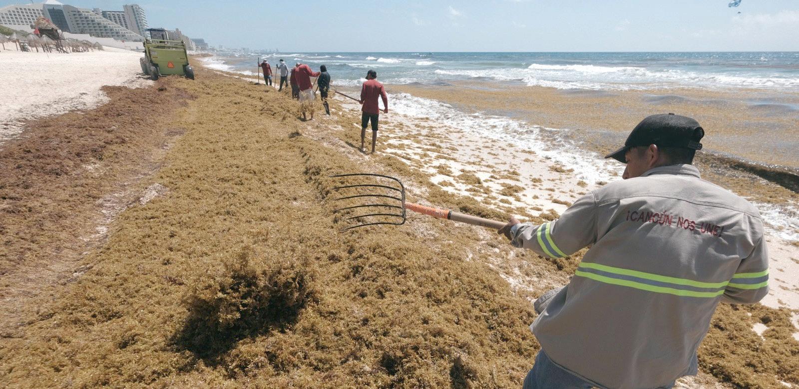 rales, con el apoyo de concesionarios y ciudadanos comprometidos. Por su parte, el secretario municipal, Pablo Gutiérrez Fernández, señaló que ante el recale masivo se han reforzado las acciones de limpieza con la participación de distintos equipos de la administración municipal. “Hay un equipo de 300 compañeros que salen todas las mañanas a esta gran labor en nuestras playas. Hoy los esfuerzos se concentran en Playa Delfines. La semana pasada se recolectaron alrededor de mil 740 toneladas de sargazo, lo que ya triplica lo recolectado en el mismo periodo del año anterior; la situación ha sido intensa”, comentó. / SARAÍ REYES