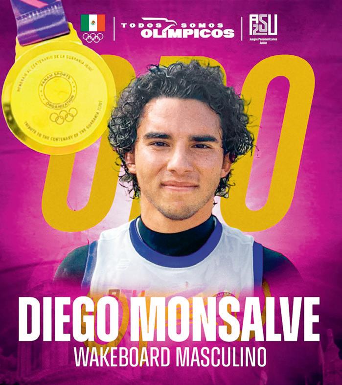Con Diego Monsalve a la cabeza, México extendió su cosecha dorada en los Juegos Panamericanos Junior en Asunción 2025, con el primer lugar en wakeboard, tras sumar la primera presea dorada para el país en esta disciplina con un puntaje de 85.67. El mexicano finalizó su prueba individual junto al colombiano Felipe Mejía en el segundo sitio, con hasta 11 puntos entre ambos y con el norteamericano Kerth Oneal en el