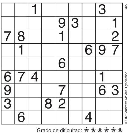 Complete el recuadro de tal manera que cada fila, columna y cuadro de 3x3 tengan los números del 1 al 9.