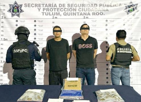 Como parte de los operativos estratégicos para combatir delitos de alto impacto, elementos de la Secretaría de Seguridad Pública y Protección Ciudadana de Tulum, en coordinación con la Fiscalía General del Estado (FGE), detuvieron a dos personas por su probable participación en delitos contra la salud.