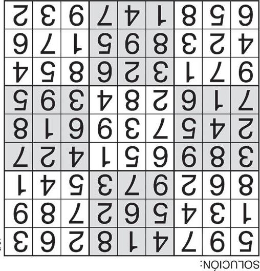 Complete el recuadro de tal manera que cada fila, columna y cuadro de 3x3 tengan los números del 1 al 9.