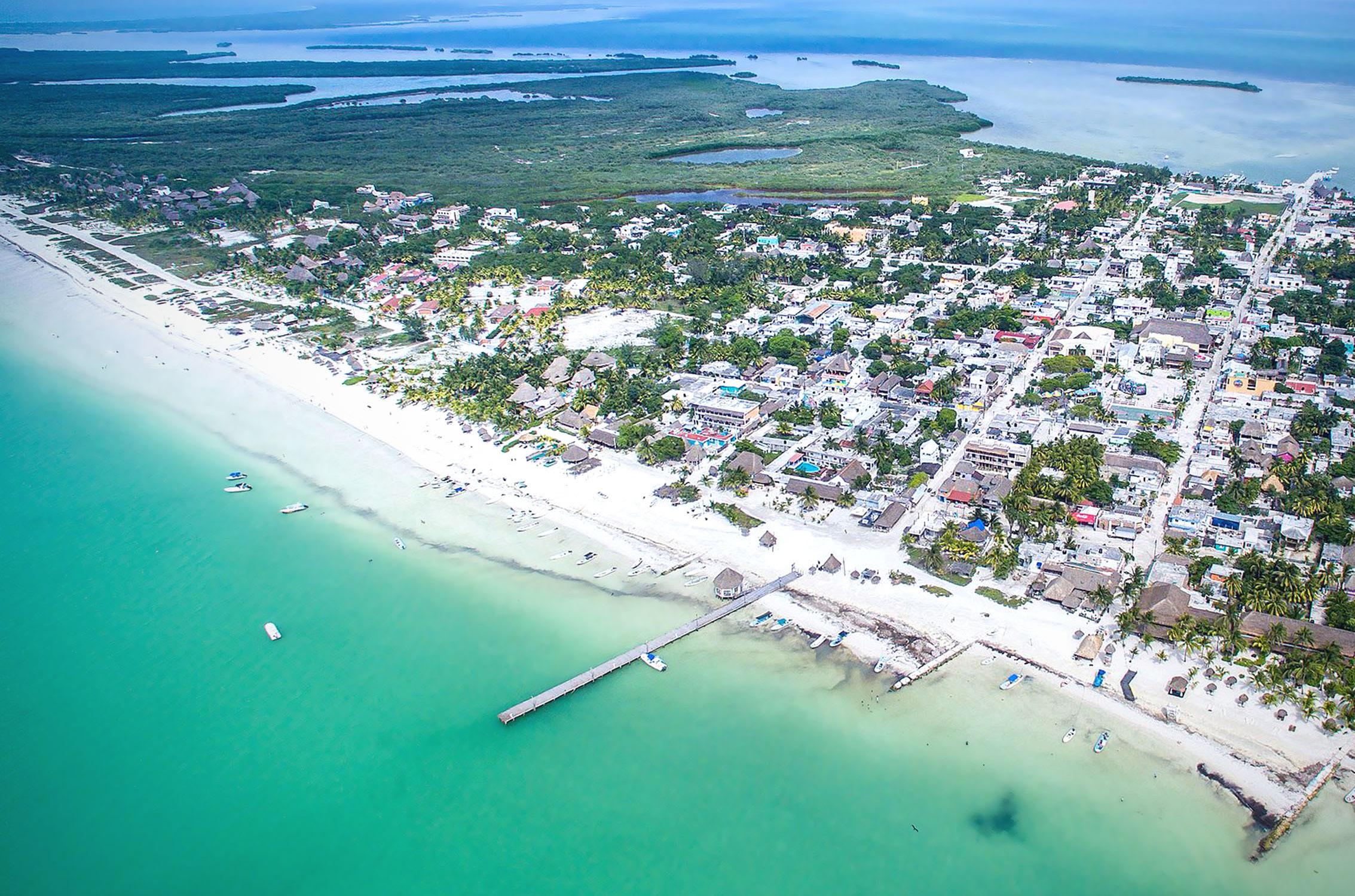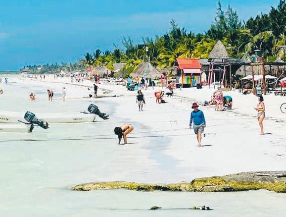 litoral caribeño, es su localización al norte de Quintana Roo, justo en el punto donde el Golfo de México y el mar Caribe se encuentran. Cabo Catoche, ubicado en el extremo norte de la península, funciona como una barrera natural que desvía las corrientes marinas cargadas de sargazo hacia otras regiones, impidiendo que lleguen directamente a las playas de la isla. Esta ventaja geográfica ha sido determinante para posicionar a Holbox como un refugio natural para turistas que buscan playas limpias, aguas tranquilas y experiencias ecoturísticas alejadas del turismo masivo. / LICETY DÍAZ
