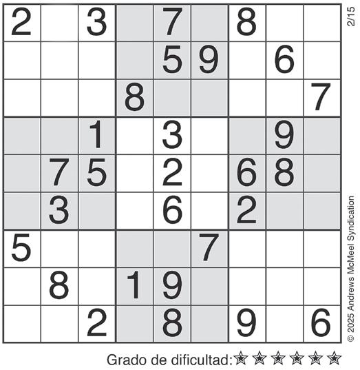 Complete el recuadro de tal manera que cada fila, columna y cuadro de 3x3 tengan los números del 1 al 9.