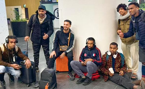 Sin mayores lujos, algunos integrantes de Nueva Caledonia descansaron en el piso del aeropuerto de la CDMX.