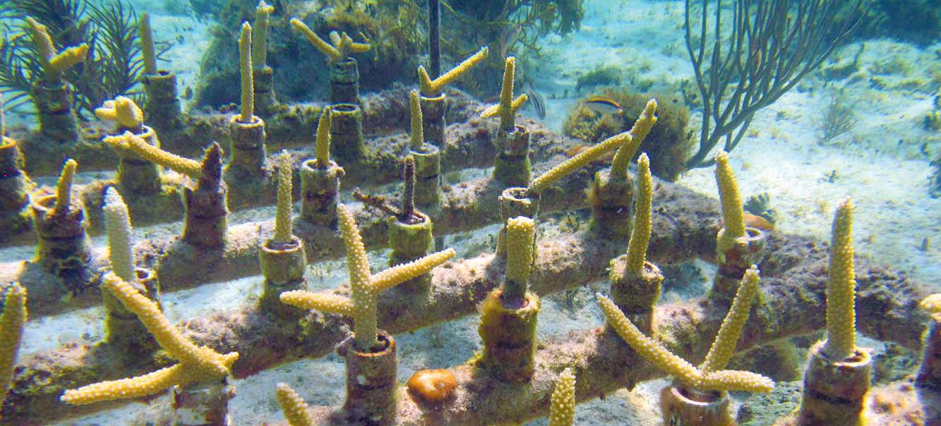 Especies restauradas: Acropora palmata (cuerno de alce) y Acropora cervicornis (cuerno de ciervo)