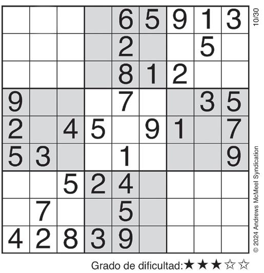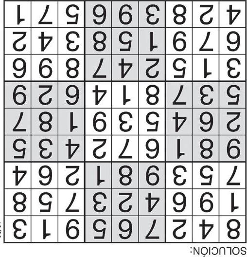 Complete el recuadro de tal manera que cada fila, columna y cuadro de 3x3 tengan los números del 1 al 9.