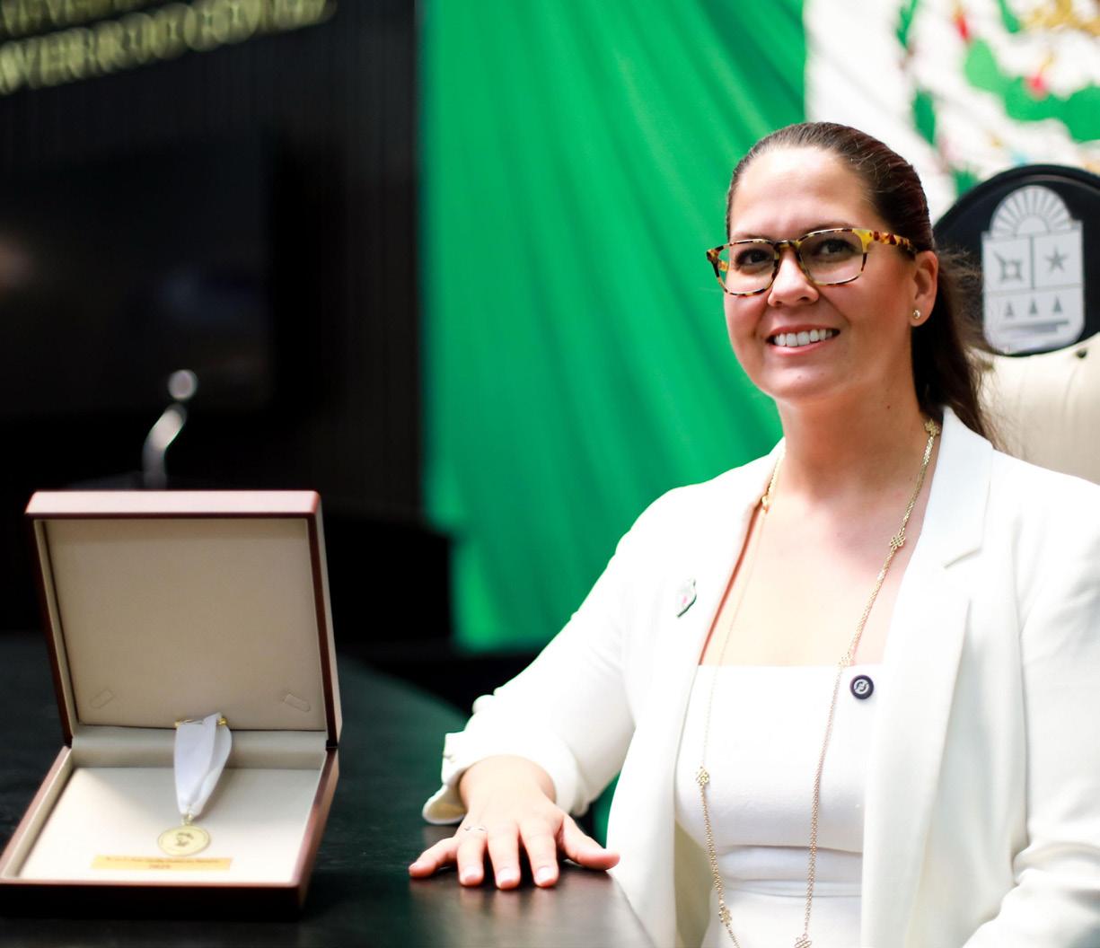 GALARDÓN. Cecilia Gutiérrez Navarro recibió la Medalla al Mérito de Protección Ecológica Ramón Bravo Prieto, por su labor como defensora de los ecosistemas marinos y líder en la protección de tiburones torov, en sesión de la XVIII Legislatura P. 5