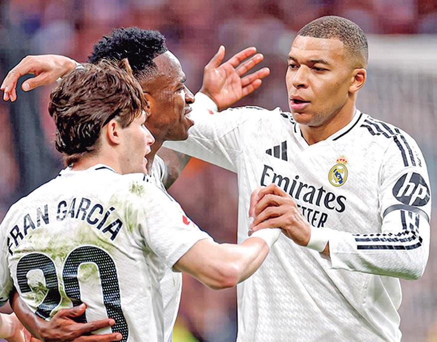 Con los goles de Kylian Mbappé y Vinícius Junior en la primera mitad, el Real Madrid superó 2-1 al Rayo Vallecano durante el cierre de la jornada dominical en España en su fecha 27, para compartir la cima de la clasificación con el FC Barcelona.