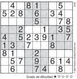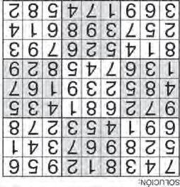 Complete el recuadro de tal manera que cada fila, columna y cuadro de 3x3 tengan los números del 1 al 9.