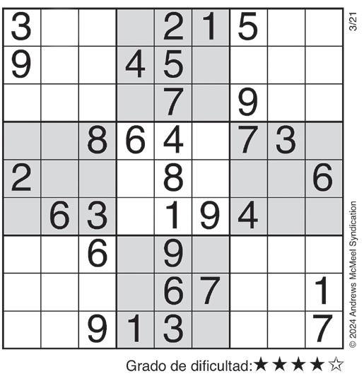 Complete el recuadro de tal manera que cada fila, columna y cuadro de 3x3 tengan los números del 1 al 9.