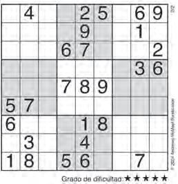 Complete el recuadro de tal manera que cada fila, columna y cuadro de 3x3 tengan los números del 1 al 9.