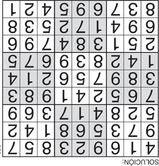 Complete el recuadro de tal manera que cada fila, columna y cuadro de 3x3 tengan los números del 1 al 9.