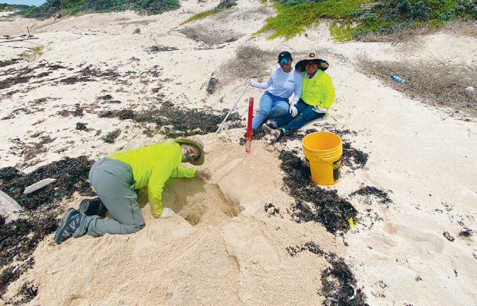 FAUNA. Personal de la Dirección de Ecología en la isla verifica las anidaciones que tienen un mayor riesgo de ser impactadas.
