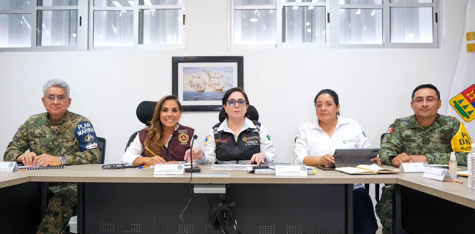 La Coordinación Nacional de Protección Civil cambió a color amarillo la alerta en Quintana Roo por el acercamiento del huracán Beryl, que se anunció ayer durante la reunión de trabajo en el Centro de Mando de Incidencias instalado en la base naval de Playa Linda. Horas más tarde, en cinco municipios de la entidad, Tulum, Felipe Carrillo Puerto, Bacalar, Othón P. Blanco y José María Morelos, se decretó la Alerta Naranja, debido a que son los que están más cerca de la probable zona de impacto. Encabezado por la gobernadora de estado, Mara Lezama Espinosa, y la coordinadora nacional de Protección Civil, Laura Velázquez Alzúa, acompañadas por los altos mandos del Ejército, Marina, Guardia Nacional, así como el Sistema DIF, y miembros del gabinete estatal, en esta reunión de trabajo se tuvo, de