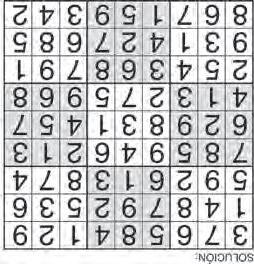 Complete el recuadro de tal manera que cada fila, columna y cuadro de 3x3 tengan los números del 1 al 9.