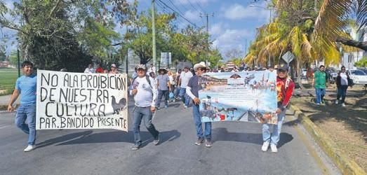 Más de 30 millones de pesos al año pierden las familias de Quintana Roo que se dedican a la crianza de gallos de pelea, una tradición mexicana que aseguran se ve en peligro ante la prohibición de este tipo de eventos, señaló Eleazar Lara Ponce, delegado de la zona norte de la Sección Nacional de Aves de Combate, quien junto con alrededor de 80 integrantes de la asociación se manifestaron en la Plaza de la Reforma, en Cancún, para solicitar la regulación de la Ley de Bienestar Animal.