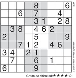 Complete el recuadro de tal manera que cada fila, columna y cuadro de 3x3 tengan los números del 1 al 9.