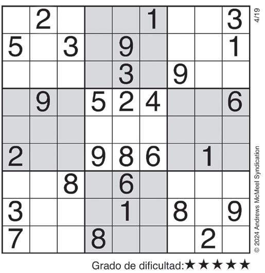 Complete el recuadro de tal manera que cada fila, columna y cuadro de 3x3 tengan los números del 1 al 9.