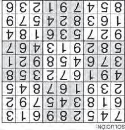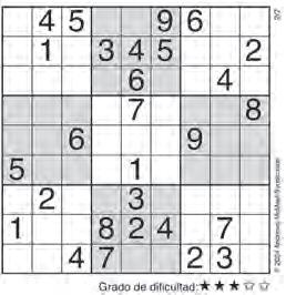 Complete el recuadro de tal manera que cada fila, columna y cuadro de 3x3 tengan los números del 1 al 9.