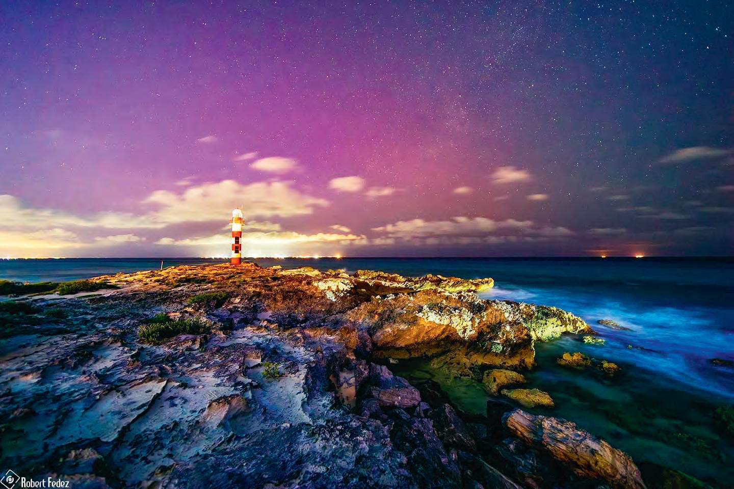 MARAVILLA. La tormenta solar del fin de semana se pudo presenciar en destinos turísticos como Holbox y Cancún, de este último, la gobernadora Mara Lezama compartió en sus redes sociales esta imagen, que corresponde a El Faro, en la zona hotelera, al cual se llega por Playa Caracol.