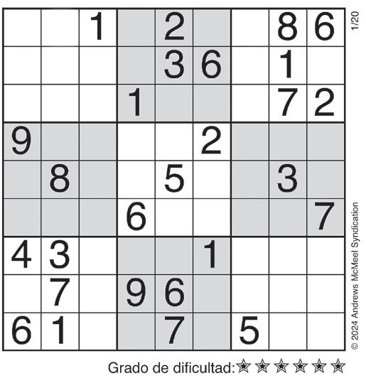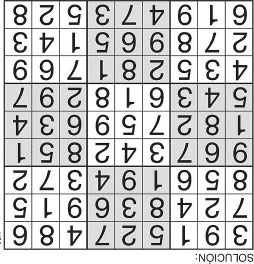 Complete el recuadro de tal manera que cada fila, columna y cuadro de 3x3 tengan los números del 1 al 9.