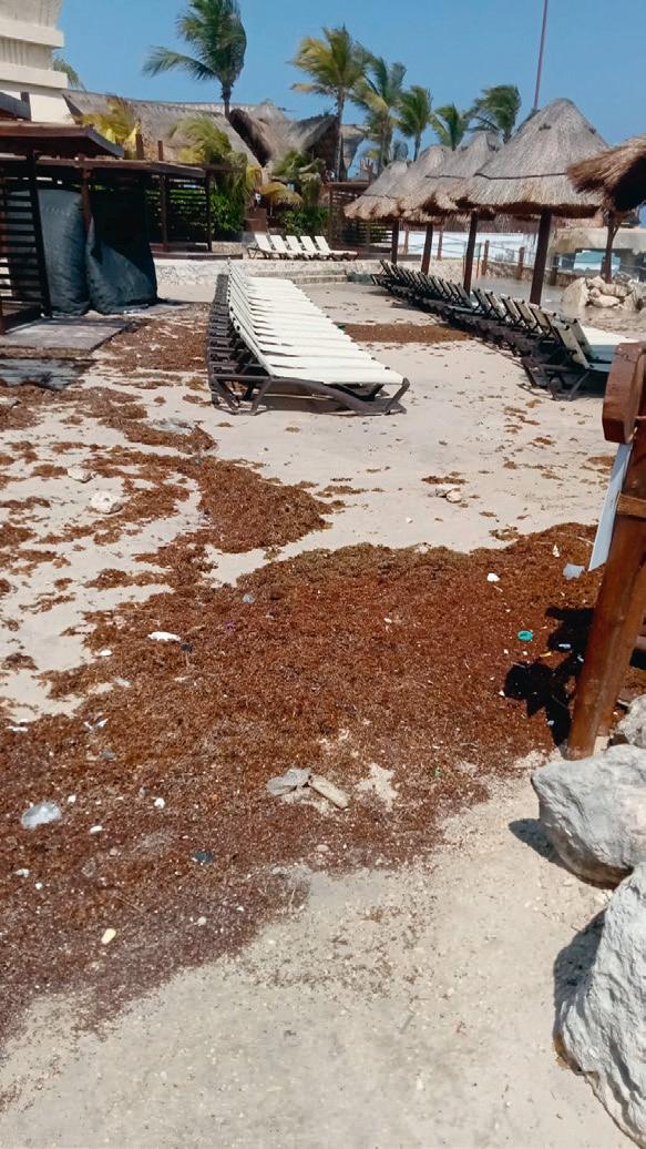 El grupo de sargaceros encargado de mantener las playas de Mahahual libres de la conocida alga marina, comentaron que durante el segundo fin de semana de abril, la primera ola de sargazo cubrió en su mayoría las playas de la Costa Maya.