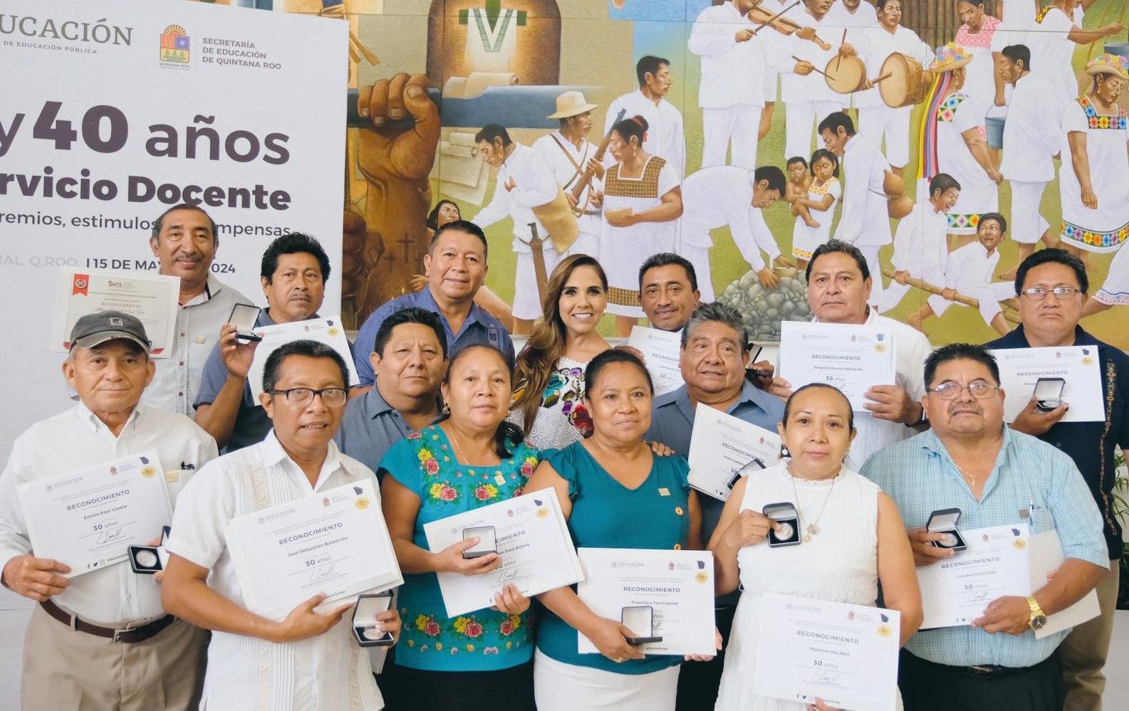 En conmemoración de la celebración del Día de la Maestra y el Maestro, y en cumplimiento con los decretos de creación correspondientes, la gobernadora Mara Lezama Espinosa encabezó la entrega de estímulos al personal docente con 30 y 40 años de servicios correspondientes a los premios “Rafael Ramírez” y “Maestro Altamirano”.