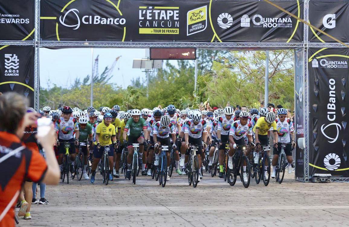 En una fría mañana dominical mil 200 ciclistas de distintos países, así como organizadores, se dieron cita para en punto de las 6:00 AM comenzar el evento de talla internacional L’Étape Cancún by Tour de France, de un recorrido de 160 kilómetros, el cual se llevó a cabo en este destino turístico.