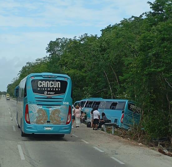 Un accidente de tránsito empañó la celebración del Día del Padre, luego de que un autobús de turismo de la empresa Del Valle, que transportaba pasajeros hacia Chichén Itzá desde Cancún, se volcara en la autopista, cerca de El Tintal, en Quintana Roo. De acuerdo con testigos presenciales, el conductor del autobús perdió el control del vehículo en el tramo Nuevo ValladolidLeona Vicario, en el municipio de Puerto Morelos, lo que provocó que la unidad se saliera de la carretera y terminara volcando entre la maleza y los árboles. El incidente dejó un saldo de varios heridos, incluyendo al conductor del autobús y pasajeros, algunos de los cuales se encuentran en estado grave. Al lugar acudieron elementos de emergencia, incluyendo ambulancias, paramédicos, bomberos y agentes de la Policía Federal, quienes brindaron atención médica a los lesionados y acordonaron la zona para facilitar las labores de rescate y realizar el traslado de los lesionados a los hospitales más cercanos. Durante algunas horas, se mantuvo cerradon el tráfico en la carretera por ambos sentidos, mientras los cuerpos de rescate hacían su trabajo. Las autoridades locales aún no han confirmado las causas del suceso, pero se presume que el exceso de velocidad o una falla mecánica podrían haber sido factores determinantes./ QUADRATÍN