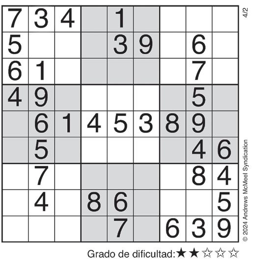 Complete el recuadro de tal manera que cada fila, columna y cuadro de 3x3 tengan los números del 1 al 9.